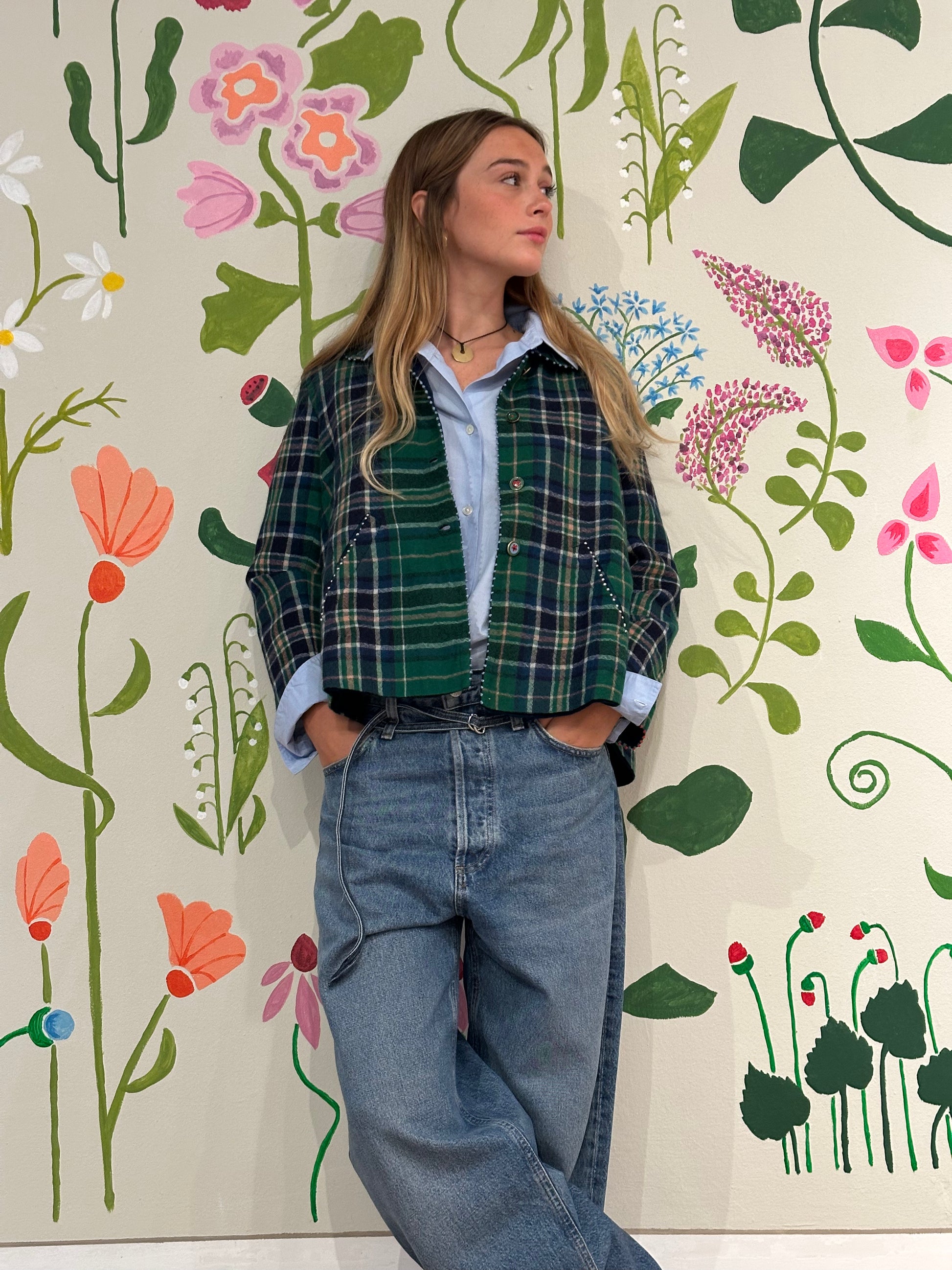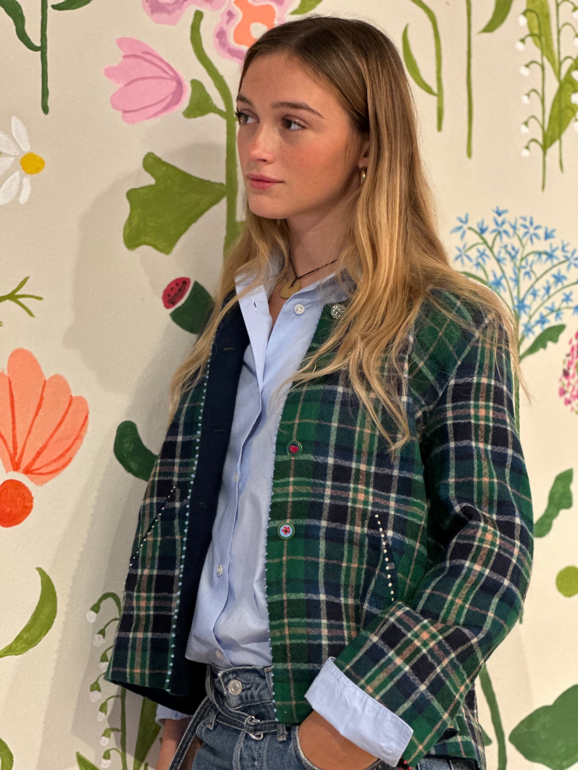 Giacca corta in pura lana reversibile ,tessuto check e tinta unita